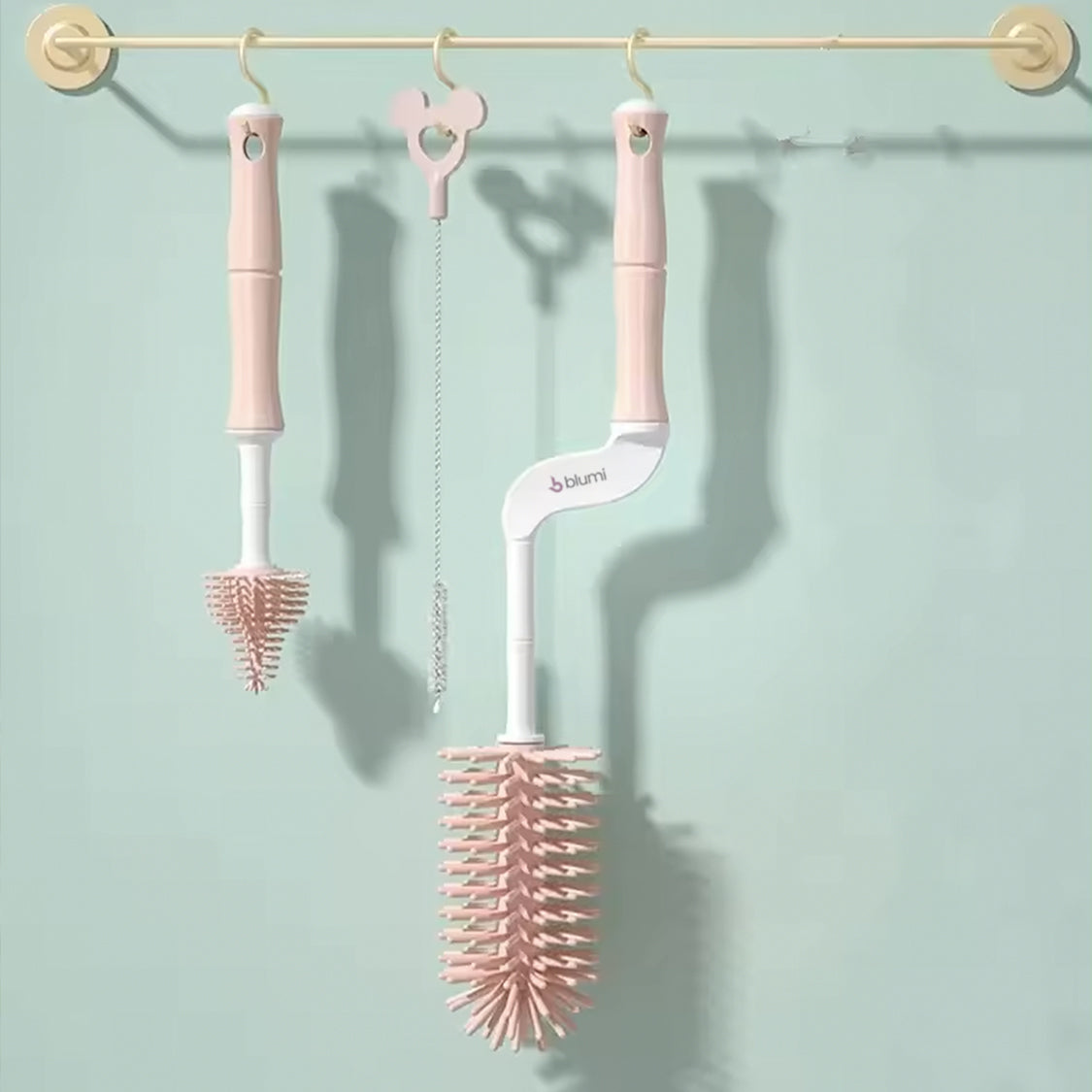 Blumi cleaning brushes typically feature ergonomic handles and bristles of varying sizes and textures, making cleaning more convenient and enjoyable. The Blumi Easy Brush is perfect for cleaning pacifiers and other small accessories . This way, you can clean everything efficiently with just one tool.