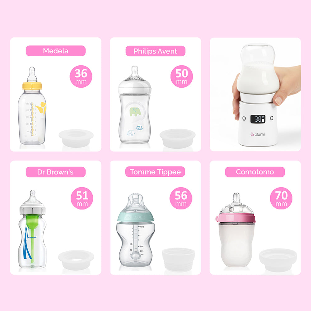 5 bottle adapters are included with your portable bottle warmer for worry-free travel. Popular brands include: